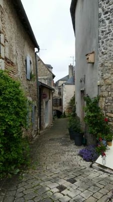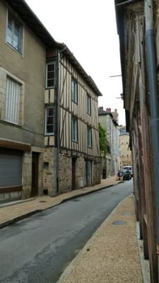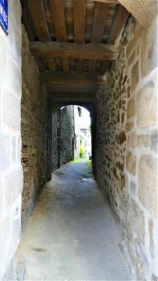 C'était l'axe principal de la ville. Les maisons sont anciennes. Au bout, vestiges du pont médiéval.