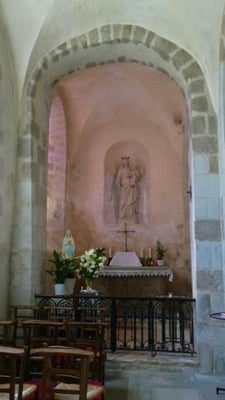 est située à deux kilomètres de la ville, tout près de la Vienne. C'est une église de proportion modeste. Elle est située au cœur d'un cimetière d'origine mérovingienne dont il ne subsiste que quelques sarcophages. L'édifice est très ancien comme en témoigne le petit appareil qui a été utilisé pour sa construction. Celui-ci est en effet de tradition antique et a été réemployé. La voie romaine qui reliait Lemonum (Poitiers) à Avaricum (Bourges) et franchissait ici la Vienne à gué avait favorisé le développement d'une petite agglomération. Cette dernière a été abandonnée au cours du Haut Moyen Âge.