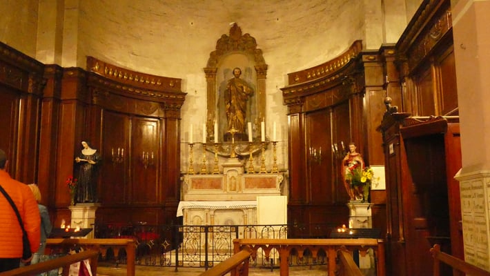 Cette église fut construite au XVIIe siècle pour servir de chapelle au couvent des Récollets alors attenant. Elle est, avec sa façade en courbes et contre-courbes, typique des églises baroques de cette époque en Provence Orientale. Très beau maître-autel du XVIIIe siècle en marbre polychrome, chœur, boiserie et chaire en noyer de Sénéquier.