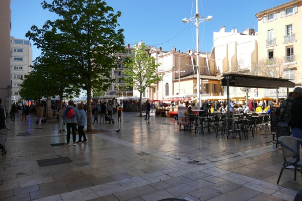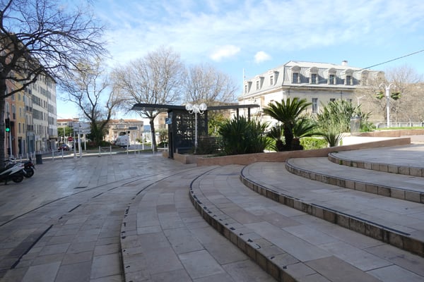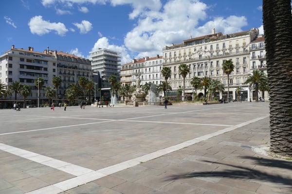 Cette grande place du quartier haussmannien est au cœur de la vie toulonnaise : cinémas, théâtre Liberté, cafés et restaurants, grands magasins…