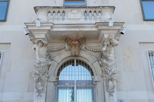 Sur la façade moderne de la mairie d’honneur se trouve la porte rescapée de l’ancien Hôtel de ville détruit, en même temps que le reste du port, en 1944. Cette porte de 1657, œuvre du sculpteur marseillais Pierre Puget, représente deux allégories (la force et la fatigue) qui supportent le balcon d’honneur. Classés Monument historique.