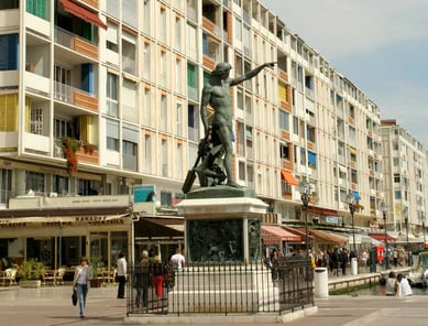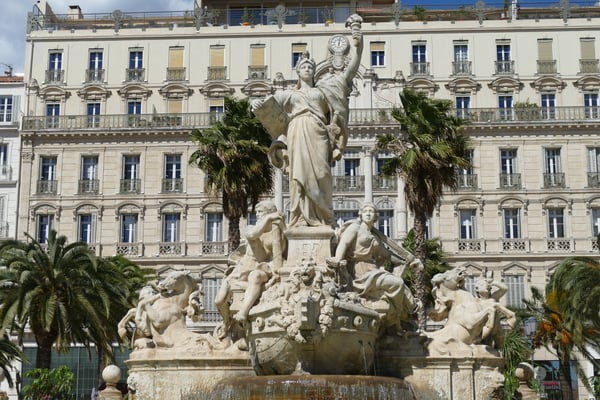 C’est LA place incontournable de la ville, une merveille d’harmonie et de beauté. Elle compte quelques monuments importants comme le Grand Hôtel, construit en 1870 et qui abrite aujourd’hui un théâtre, la Tour de la Caisse d’Épargne, l’Hôtel des Arts et la fontaine de la Fédération (1889) réalisée par les frères Allar. qui, avec ses 3 figures sculptées, représente la France, la force et la justice.
