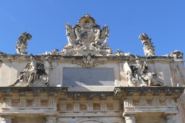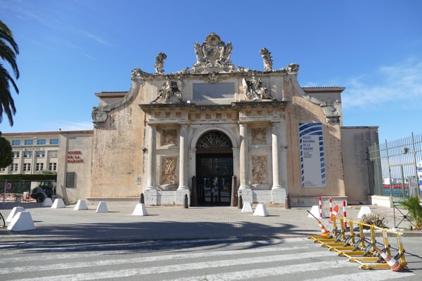 Cette porte du XVIIIe siècle est de nos jours la porte d’entrée du Musée National de la Marine. Quatre colonnes grecques en supportent le fronton. A gauche, la statue de Mars, dieu de la guerre, et à droite Minerve, déesse de l’intelligence et de la stratégie.