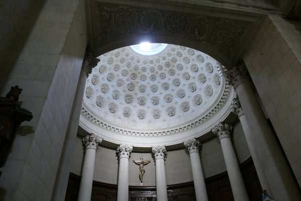 Achevée à la veille de la Révolution, cette église néoclassique servit d’abord de Temple au culte de la Raison et de l’Être Suprême. Magnifique coupole à lanternon au-dessus de l’autel.