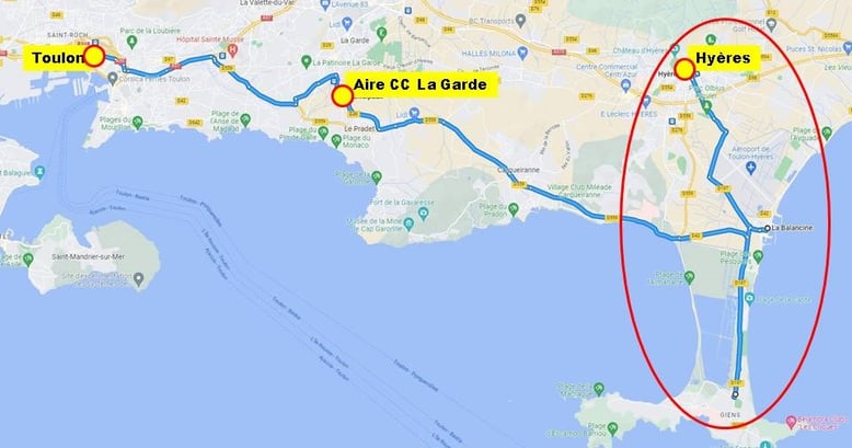 Aire de camping car privée très agréable et spacieuse entre La Garde et le Pradet, à 15 mn de Toulon et de Hyères. Michel et Mireille vous accueillent toute l'année. Merci d'appeler avant d'arriver. La mer est à 2,5 km, les commerces à 1 km, piste cyclable devant l'aire de camping-car, bus..... Vue magnifique du haut du Mont Faron, îles de Porquerolles, village pitoresque du Castellet etc..... Un bel accueil vous est réservé.