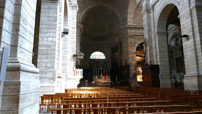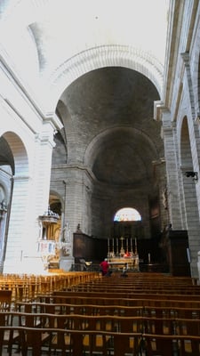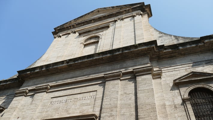 En 1733, la chute du clocher entraîne la reconstruction totale l’église romane fortifiée élevée par les templiers. L'église actuelle est œuvre de style toscan, terminée en 1746 par Jean-Baptiste Franque, célèbre architecte avignonnais. Elle possède un orgue exceptionnel, œuvre du facteur Jean François l'Epine, construit en 1758 et également un trésor, composé d’objets provenant des églises de la ville.