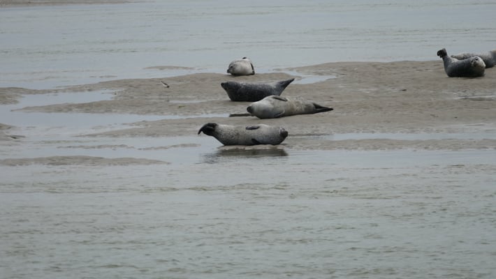 Les phoques se reposent sur le banc de sable afin de récupérer assez d’énergie pour chasser à marée haute. En effet, leur activité favorite leur demande beaucoup d’énergie, il est donc vital pour eux de se reposer et stocker de la graisse afin d’être prêts pour l’hiver. Les phoques ont aussi besoin de ce banc de sable pour se réchauffer, se reproduire, mettre bas et nourrir leurs petits.