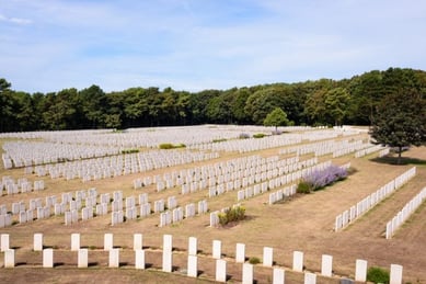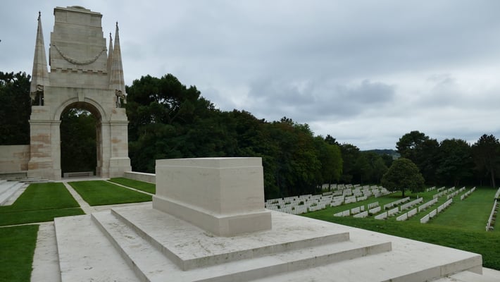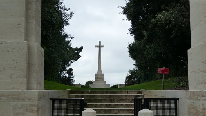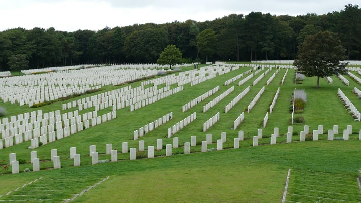 Plus de 10 000 tombes blanches minutieusement alignées témoignent du sacrifice de soldats du Commonwealth durant les Première et Seconde Guerres mondiales.