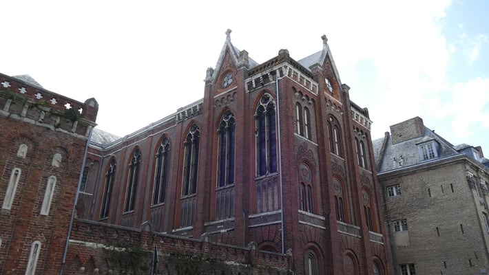 L’occasion alors pour les spectateurs ou participants de profiter de cette chapelle longue de 60m composée d’une seule nef de six travées, sans transept, mais avec une abside polygonale abritant le chœur. A ce dernier, se dressent deux tours carrées de 40 mètres de haut. Elle est ouverte lors d’événements programmés dans le bâtiment ou pour des visites ponctuelles (comme les Journées du Patrimoine). Sinon, sa seule façade baroque vaut le coup et jalonnera avec bonheur votre visite de Saint-Omer et de son centre-ville.