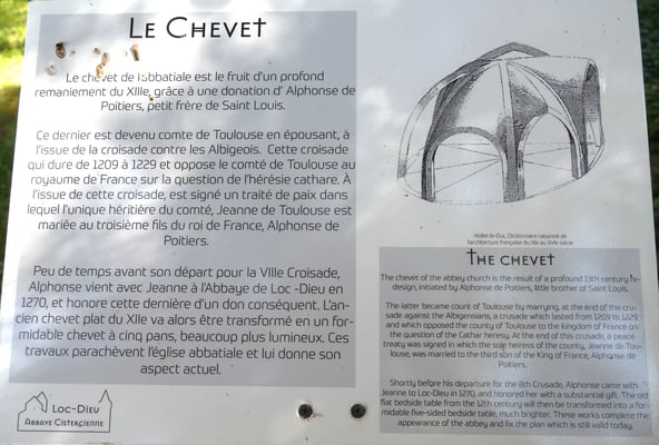 L’abbaye fortifiée de LOC-DIEU est donc le fruit original de moines cisterciens arrivés il y a neuf siècles, de la guerre de Cent Ans qui la transforma en château fort et d’une famille qui, depuis deux siècles, s’est installée progressivement dans les étages sans effacer la présence, essentiellement horizontale, des moines. L’abbatiale du XIIème siècle, restée intacte et première voûte gothique sur base romane de Midi-Pyrénées, est connue pour son acoustique et accueille parfois des concerts de musique vocale.