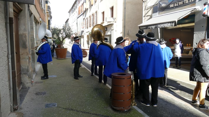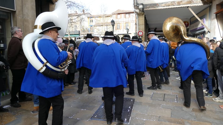 Le coup d’envois est donné le départ du siège du Tivoli, puis la descente de la Goutine accompagné des musiciens qui nous emmènent sur la place de la république à Limoux.