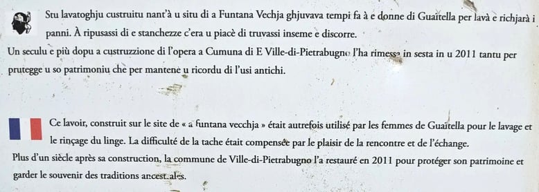 est un site historique et culturel qui attire les visiteurs par son architecture en maçonnerie et ses margelles inclinées en dalles de schiste. Ce lavoir fait partie d'un ensemble hydraulique intéressant et est entouré de paysages magnifiques, offrant des vues imprenables sur la mer Tyrrhénienne et les collines corses. Les randonneurs peuvent explorer des sentiers de randonnée qui relient le lavoir à d'autres sites historiques et naturels, tels que la chapelle Saint-Antoine d’Alzetu et la chapelle Saint-Pancrace de Ville-di-Pietrabugno.