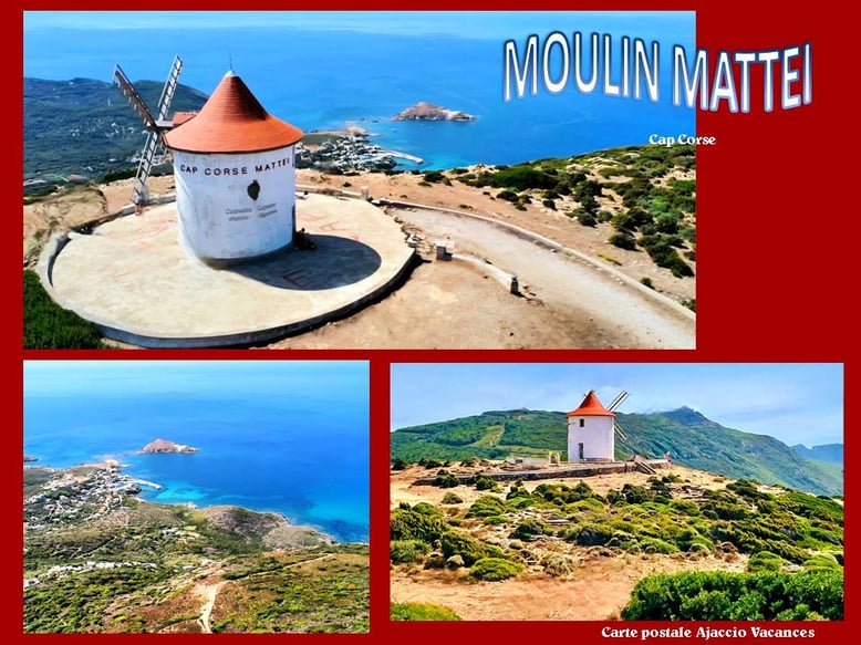 Le Moulin Mattei, propriété du Conservatoire du littoral depuis 2004, offre un vaste panorama d’ouest en est des côtes corses et italiennes. Comme dessinées à l’aquarelle, les montagnes du désert des Agriates s’enchaînent avec une vue plongeante sur le port de Centuri, suivies par l’île de la Giraglia pour enfin finir par l’archipel toscan.