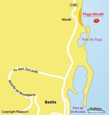 La plage de Minelli de Ville-di-Pietrabugno (également appelée plage de Toga car à proximité du port du même nom) est la première plage au nord de Bastia. Elle est située dans le lieudit de Minelli à hauteur de la Villa Ker Maria (visible depuis la route avec sa façade saumon et ses palmiers qui l’entourent). On trouve deux plages de galets et une petite crique. Elles sont surtout connues par les Bastiais qui viennent ici pour trouver un peu de calme (fréquentation très familiale, on y vient souvent pour y apprendre à nager) à seulement 2 km du centre de Bastia.