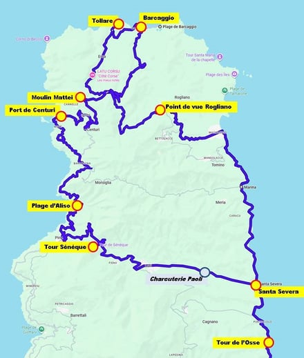 La tour de l'Osse est située sur la commune de Cagnano, en Haute-Corse. Plus précisément, la tour de l’Osse ou encore la tour de Losso, se trouve dans le Cap Corse, une péninsule emblématique de l'île, qui se distingue sur la carte de la Corse par sa forme unique, ressemblant à un doigt s'avançant vers la mer Méditerranée.