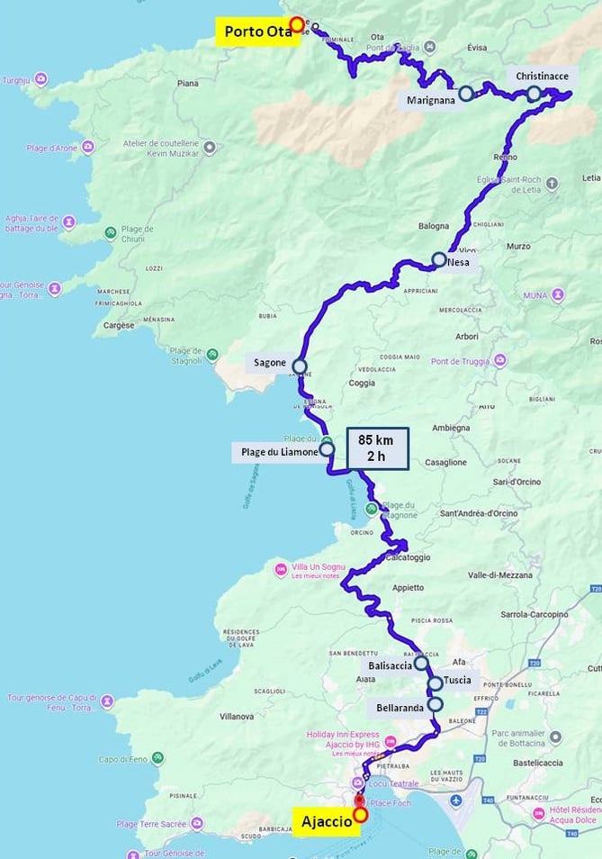 Accès: Il existe plusieurs points d'accès à la plage, notamment depuis le pont du Liamone et le long de la route. Des parkings sont disponibles à proximité, mais il est conseillé de se garer le long de la route ou d'utiliser les pistes carrossables pour accéder à la plage.