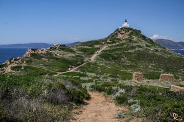 Poursuivez votre découverte en empruntant la route côtière des Sanguinaires pour profiter des magnifiques vues sur la baie d'Ajaccio. Arrivez à la pointe de la Parata pour une halte de 20 à 30 minutes et appréciez le panorama exceptionnel sur l'archipel.
