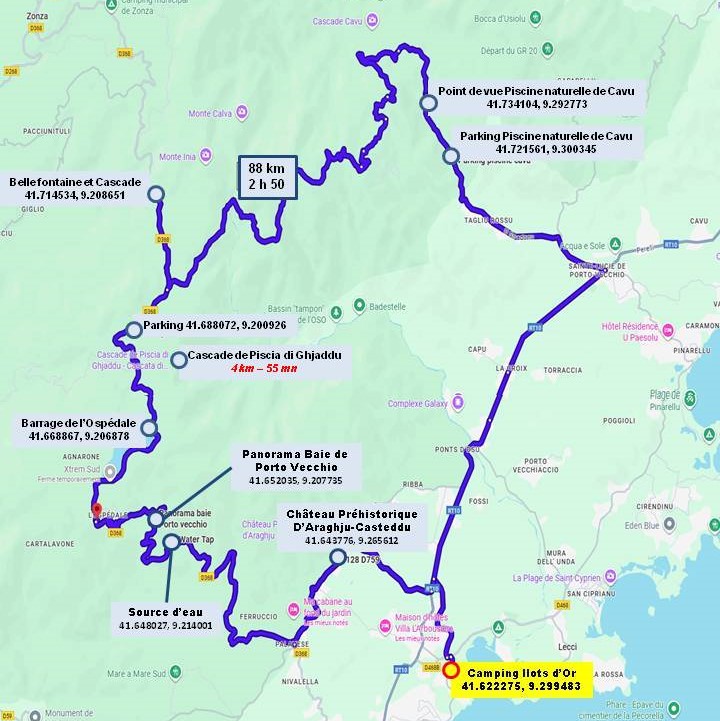 Départ : 4 km après le barrage de l’Ospedale en direction de Zonza (D 368). Parking payant .