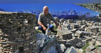 Son village miniature en pierre, Jean-Claude l'a commencé en 2002 et il y travaille toujours. "Il est connu dans le monde entier, affirme-t-il très justement. Une fois, une chaîne de télévision sud-coréenne est venue le filmer pour un reportage."