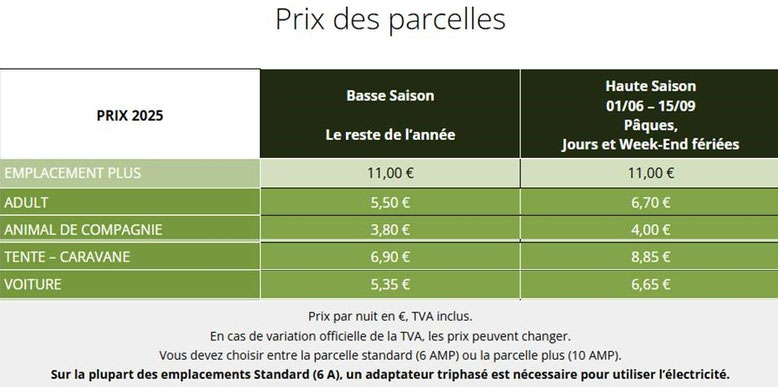 Electricité : 6 ou 10 ampères, 24h, 193 prises
