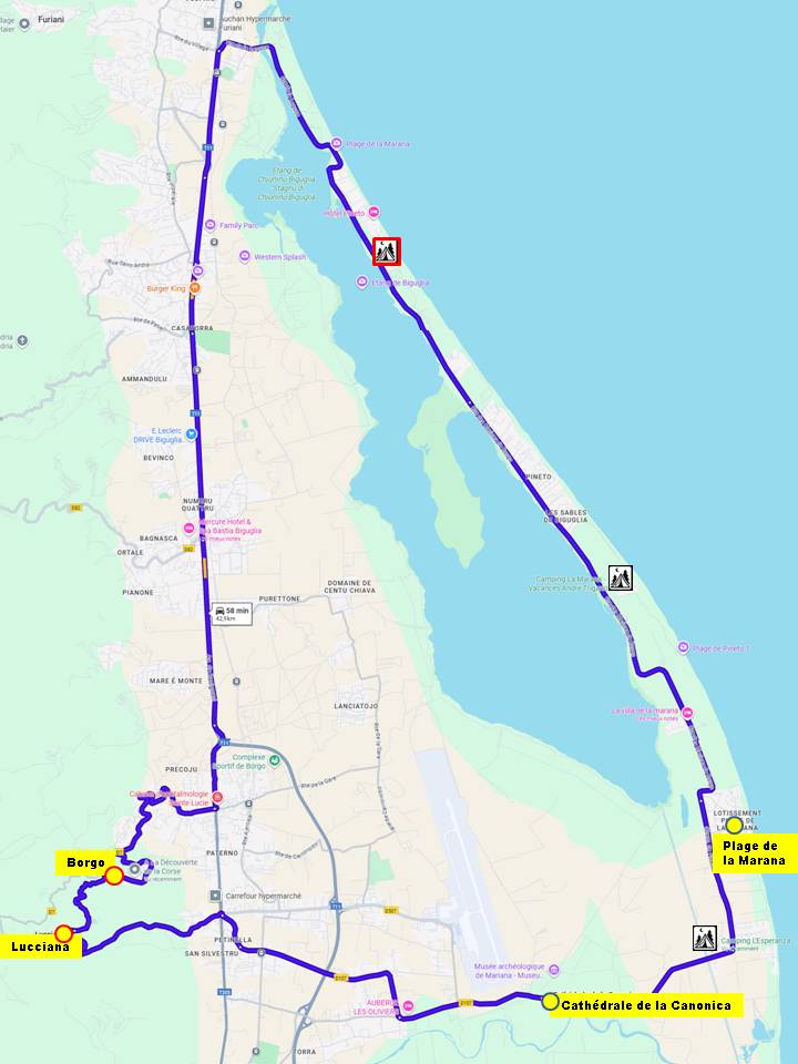 Située à seulement quelques kilomètres de Lucciana, la plage de La Marana est l’un des joyaux du littoral bastiais. Cet immense ruban de sable fin s’étend sur plusieurs kilomètres, offrant un cadre naturel préservé entre mer et étang. Pour les visiteurs en quête de détente, de nature ou d’activités nautiques, La Marana combine accessibilité et authenticité. Son atmosphère décontractée et familiale attire aussi bien les habitants des environs que les voyageurs venus découvrir les paysages du nord de la Corse.