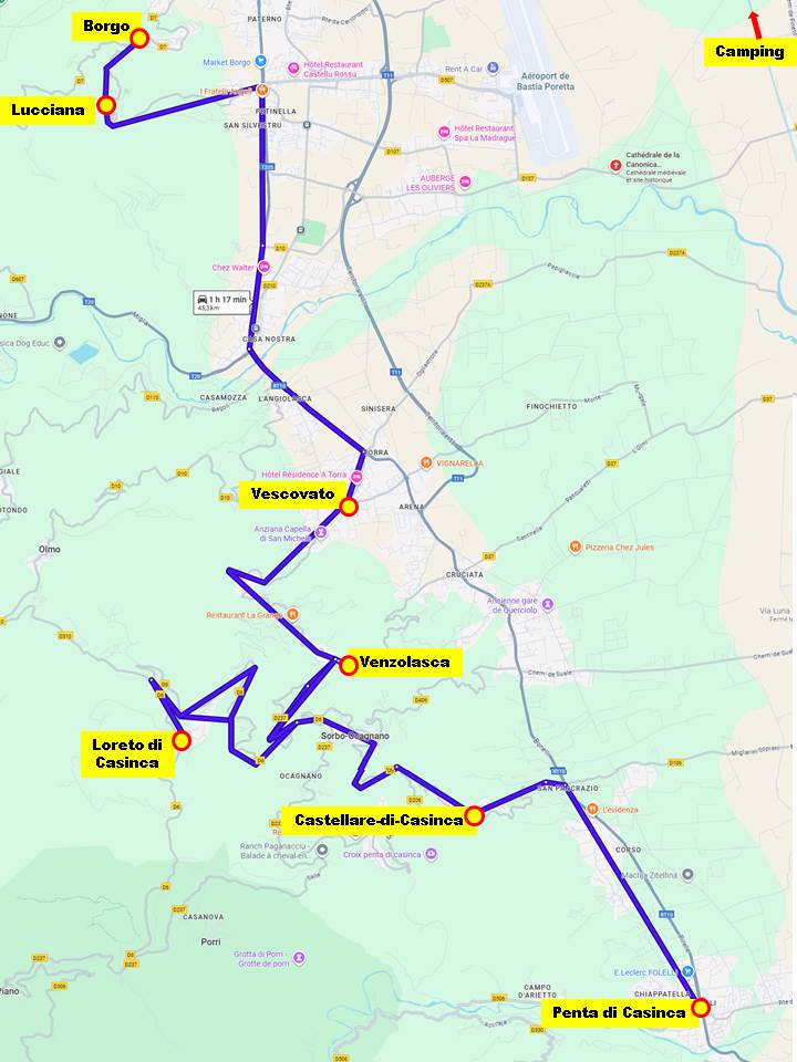 Au retour, vous reviendrez par l’autre côté de l’église, vous aurez une vue magnifique sur la plaine et l’étang de Biguglia : un endroit idéal pour une pause et pour profiter de la vue.