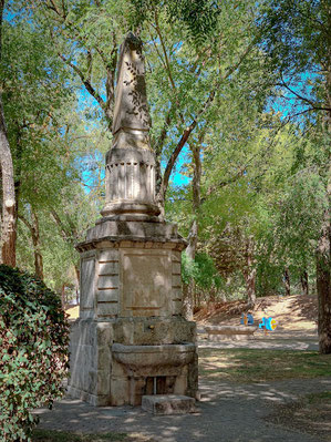 Il y a un petit champ avec des balançoires et une vieille fontaine en pierre. En descendant, nous tombons sur une autre vieille fontaine, La Encina (elle n'avait pas d'eau le jour de notre visite).