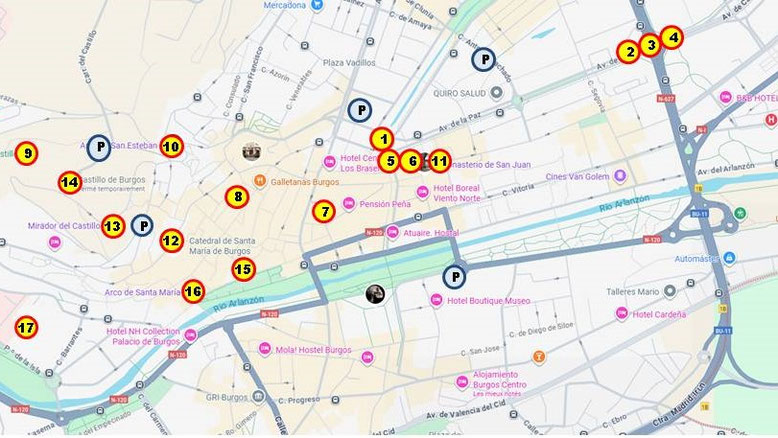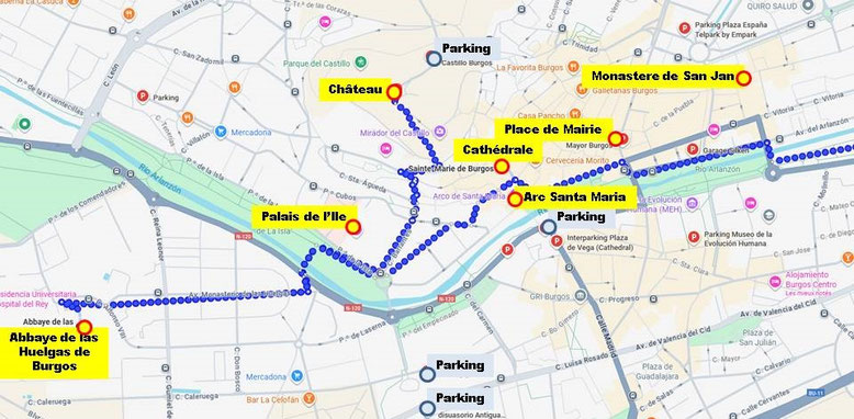 Au début des Avenues de la Paix (ancienne Avenue du Général Yagüe) et des Rois Catholiques, on pourrait dire que la Place d'Espagne constitue le point de référence de la ville de Burgos. Si vous voulez passer la journée à Burgos, il vous sera facile de s'orienter depuis cet endroit car il dispose d'un parking et les distances par rapport aux différents lieux touristiques de la ville sont très petites.