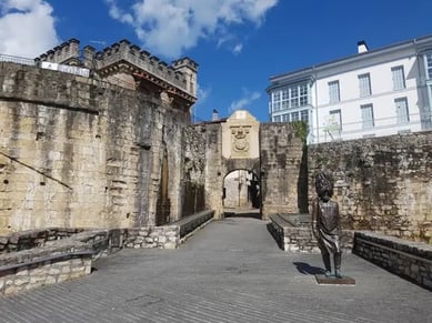 La porte Santa María est l'une des entrées de la ville fortifiée et est présidée par la statue de l'Hatxero, le soldat qui ouvrait jadis la voie aux troupes. Il y avait autrefois un pont-levis et même une chapelle, mais aujourd'hui, seul le blason de la ville médiévale de 1694 subsiste sur la partie supérieure de la porte. Cette porte est celle qui donne un accès direct à la rue Nagusi Kalea
