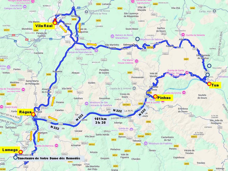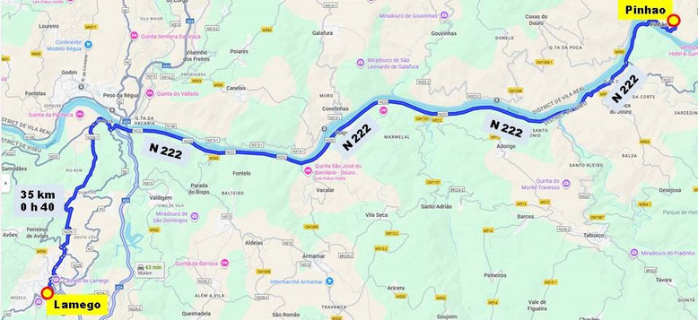 La route nationale 222 commence à Vila Nova de Gaia, dans la région métropolitaine de Porto, et continue jusqu’à Vila Nova de Foz Côa, à la frontière avec l’Espagne, sur une longueur totale de 227 km. Cette route est célèbre pour suivre le fleuve Douro sur une partie de son parcours, offrant aux voyageurs une vue imprenable sur les paysages viticoles et le relief élevé et sinueux de la région. La N222 relie la côte portugaise à la frontière avec l’Espagne, en suivant la rive gauche du Douro, en traversant plusieurs villes et villages pittoresques, comme Peso da Régua ou Castelo de Paiva, devenant ainsi l’une des routes les plus emblématiques et recherchées pour ceux qui souhaitent explorer la beauté naturelle et le patrimoine culturel de la région du Douro.