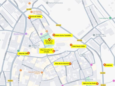 Le Palais Royal est la principale attraction touristique et patrimoniale de Olite. C’est l’édifice gothique le plus important de Navarre. On en disait qu’il avait autant de chambres qu’il y avait de jours dans l’année. L’impact de son aspect désordonné est le fruit d’agrandissements et de restaurations successives. Lors de sa construction, on le comparait aux palais les plus somptueux du continent. Sa visite s’effectue en deux parties : Le Vieux Palais ( l’antique forteresse romane et wisigothique, actuellement transformée en Parador Touristique. Le Nouveau Palais correspond à l’ampliation de Carlos III. Il faut remarquer la taille des pierres de Martin Perez de Estella, la charpenterie du maure de Tudela Lope ( El Barbicano) et les sculptures sur bois de Jehan Lome de Tournay.