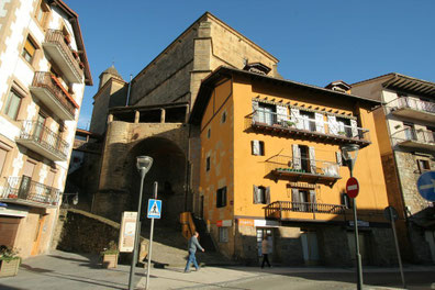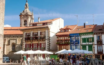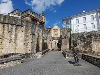 La porte Santa María est l'une des entrées de la ville fortifiée et est présidée par la statue de l'Hatxero, le soldat qui ouvrait jadis la voie aux troupes. Il y avait autrefois un pont-levis et même une chapelle, mais aujourd'hui, seul le blason de la ville médiévale de 1694 subsiste sur la partie supérieure de la porte. Cette porte est celle qui donne un accès direct à la rue Nagusi Kalea