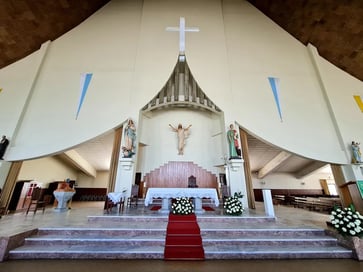 L'intérieur de l'église reprend l'architecture extérieure, et sa grande beauté ne manque pas de nous émerveiller. Le stationnement y est relativement facile, car le quartier est assez dense.