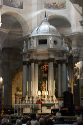Commencée en 1722 dans un style baroque très épuré, elle ne fut achevée qu'en 1838. La façade est un jeu de surfaces concaves et convexes flanquées de deux tours surmontées de petits temples, ressemblant à deux observatoires astronomiques. 1844 marqua l'achèvement du grand cul-de-four couvrant le transept ; depuis, le dôme, par certains jours de brume, semble flotter au-dessus de la ville. L'intérieur, présentant un plan en croix latine et déambulatoire, surprend par sa taille et sa luminosité.