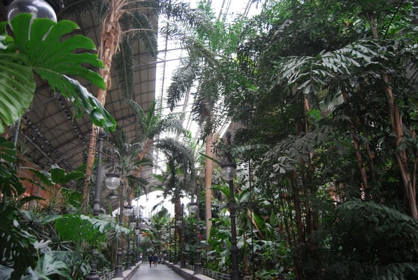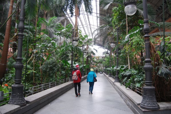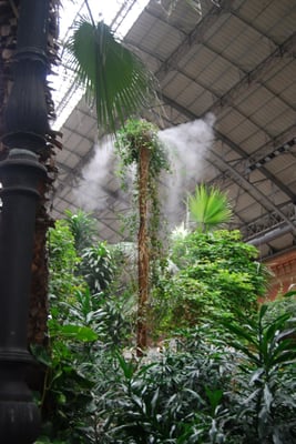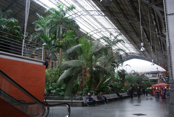 En pénétrant dans la gare d’Atocha, nous sommes surpris par la vision de ce jardin tropical environné de fer et de verre. L'ancien bâtiment des voyageurs est devenu un jardin tropical qui vise à mettre en valeur la gare suite à la ré-inauguration de celle-ci pour accueillir le train à grande vitesse