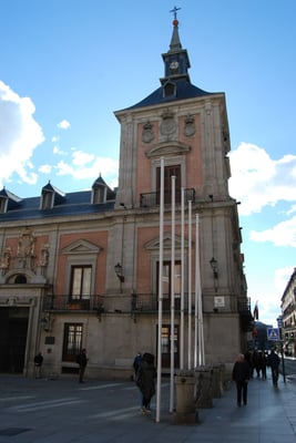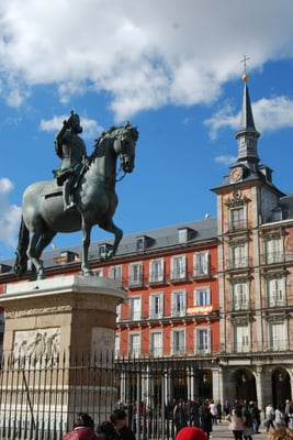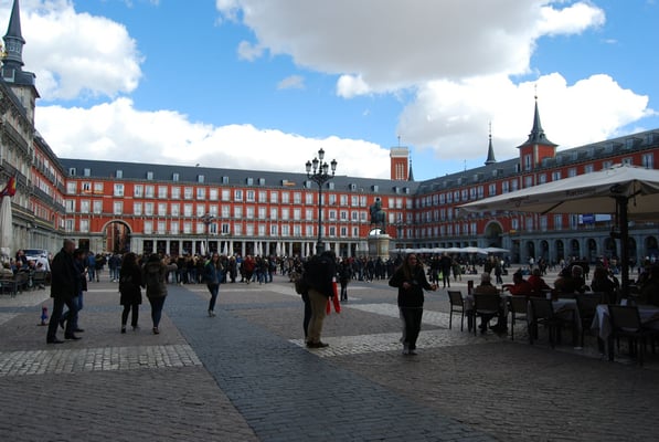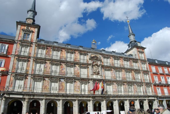 La Plaza Mayor fut édifiée sur le terrain de l'ancienne Plaza del Arrabal, là où se tenait le marché le plus fréquenté de la ville à la fin du XVe siècle, lorsque Philippe II installa la cour à Madrid. En 1617, l'architecte Juan Gómez de Mora fut chargé d'uniformiser les bâtiments de la place qui allait accueillir, au fil des siècles, des fêtes populaires, des corridas, des béatifications, des couronnements,