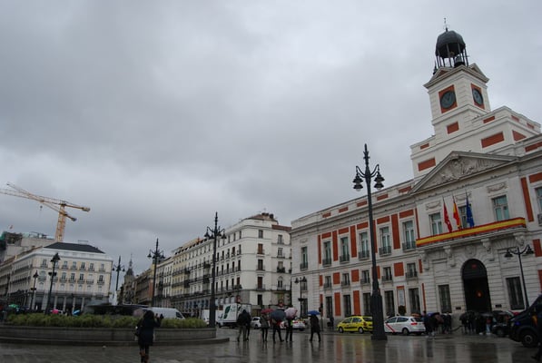 Une plaque y matérialise le point kilométrique zéro (kilómetro cero) des routes espagnoles, et représente le centre symbolique du pays.