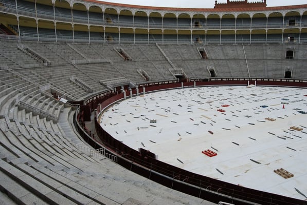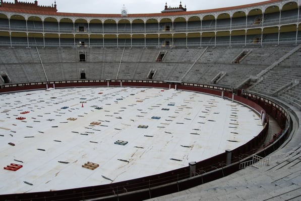 La piste de la plus grandes arène d'Europe est protégée pour qu'elle puisse être opérationnelle pour la corrida de dimanche.