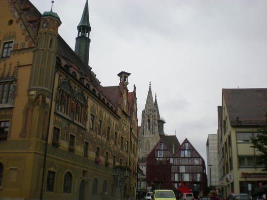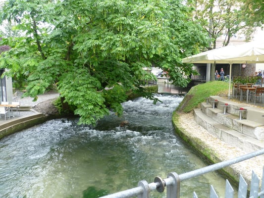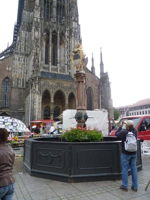 Nous avons passé la nuit sur un immense parking P+R (parking correspondant aux têtes de ligne des transports en communs) dans la ville d’Ulm, parking gratuit à côté d’un magnifique parc paysager et de la garderie d’enfants. (N 48°24445 E 10°00561 Borne eau, vidange noire et grise théoriquement payante, mais ce jour là l'eau coulait...)