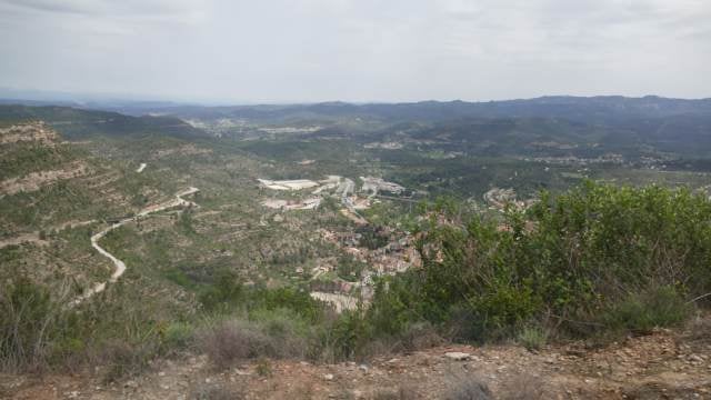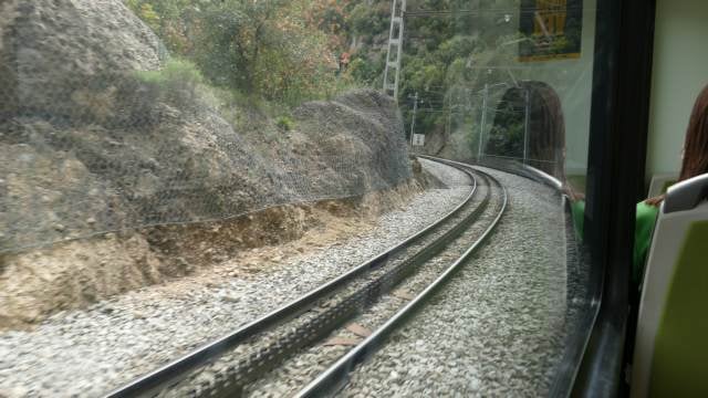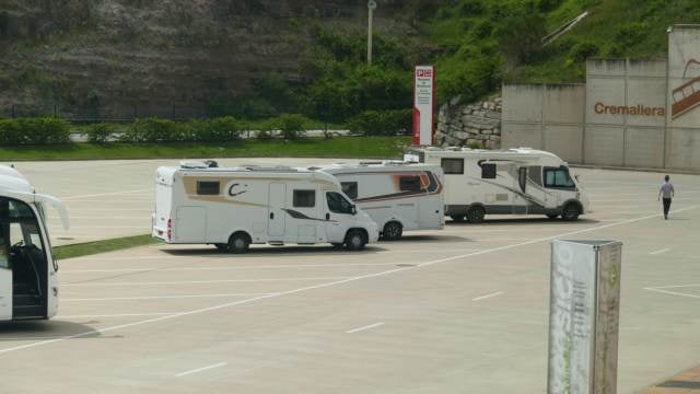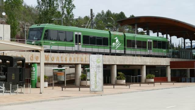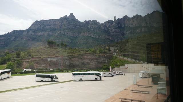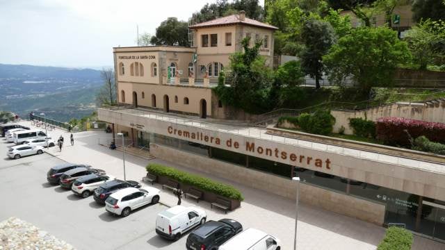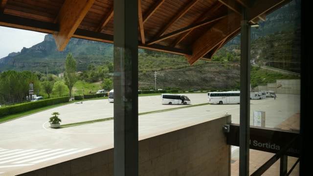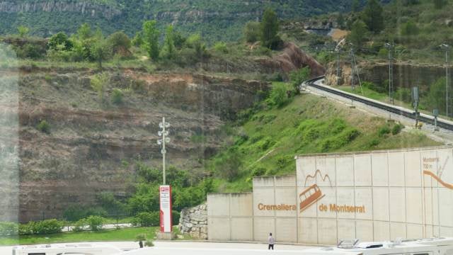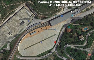 Parking des bus pour le train à crémaillère de Montserrat. Gare de Monistrol Vila. Pour y aller suivre P1. Gratuit jour et nuit. Possibilité de prendre le train pour monter à Montserrat pour 12 € Aller et retour/personne. Superbe.