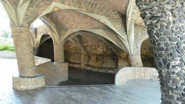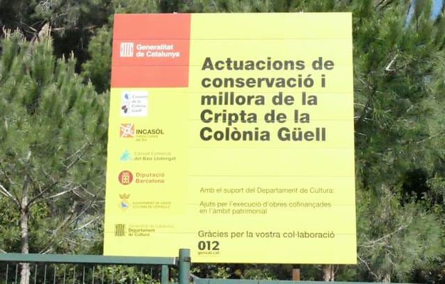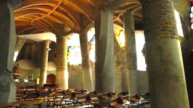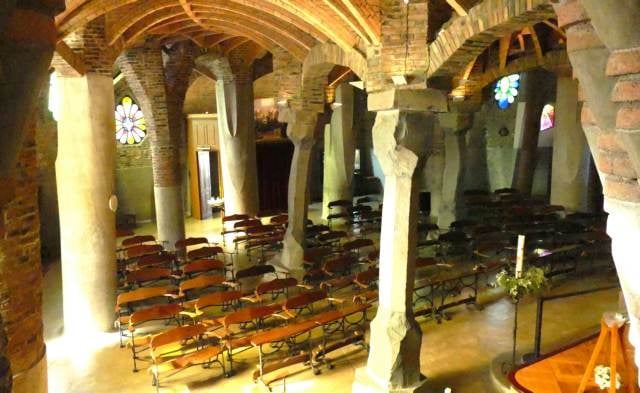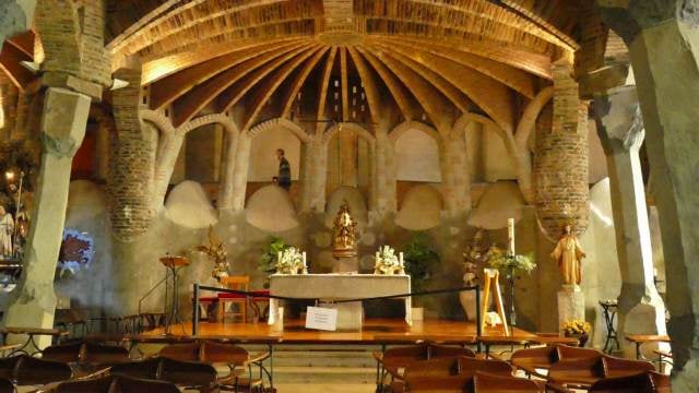 Dans un souci d’offrir des avantages sociaux à ses travailleurs, Güell charge divers architectes de la construction d’équipements et confie à Gaudí la construction d’une église. L’entrepreneur ne lui impose aucune limite, ni budgétaire ni concernant le type d’œuvre et, pour l’architecte, le projet sert de banc d’essai pour la construction de la Sagrada Família. Mais l’œuvre resta inachevée : seule la nef inférieure arriva à voir le jour, et c’est pour cette raison que l’église est populairement connue comme une crypte.