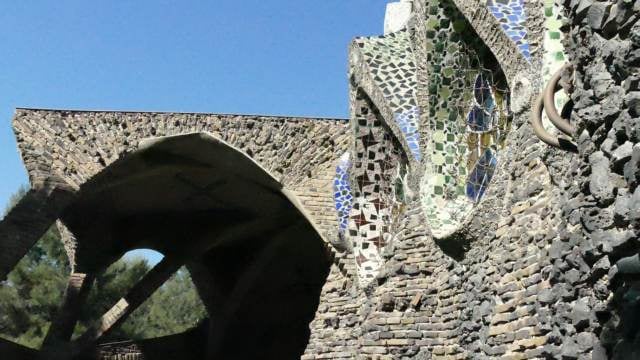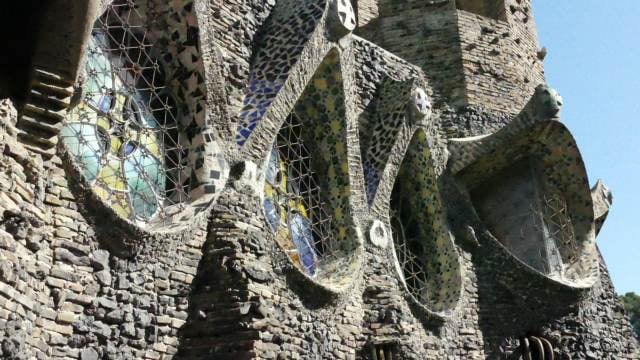 Il est intéressant de signaler la variété et l’origine diverse de beaucoup de matériaux utilisés et réutilisés par Gaudí dans cette première phase de l’église. Pierres de basalte et calcaires, briques de toutes sortes, fonte, céramique, verre et fer forgé combinent leurs textures et couleurs pour obtenir une intégration magistrale du bâtiment dans son environnement.