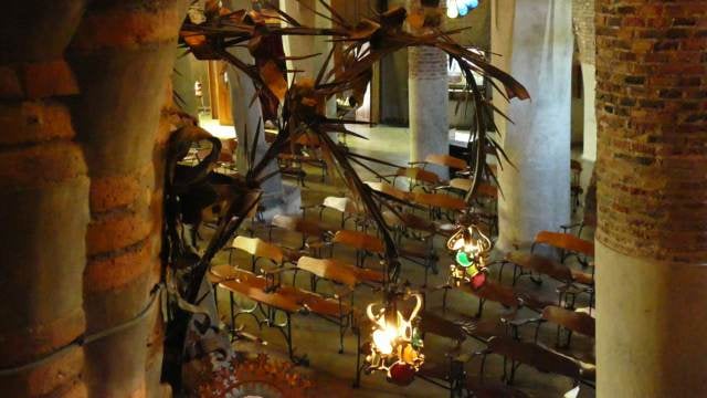 Au moment de l’interruption du chantier de l’église, Gaudí avait seulement pu construire la chapelle inférieure. C’est pour cette raison que populairement on la connaît comme la Crypte de la Colonie Güell, bien que formellement elle n’en soit pas une.