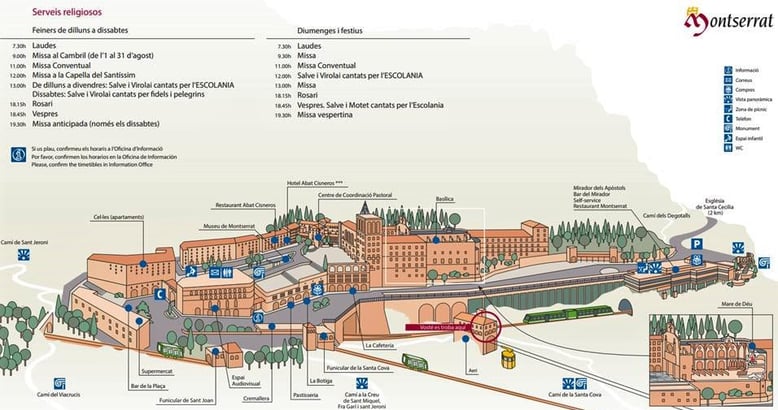 Dans le bureau d'information, le musée en plein air vous sera remis : à l'aide d'un audioguide, d'une carte et d'un livret explicatif, vous pourrez également apprendre par vous-même les aspects les plus importants de l'histoire du monastère. comme les espaces les plus significatifs du Sanctuaire de Montserrat.