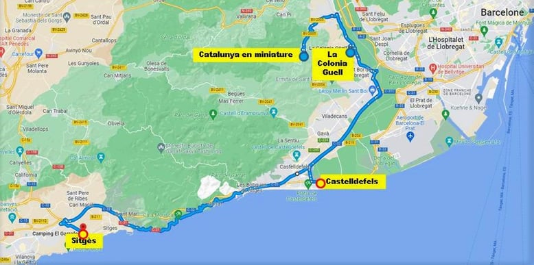 Parking gratuit jour à la porte de la Catalogne en miniature. Vous pouvez passer la nuit tranquillement.