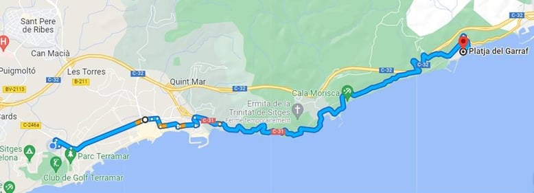 La plage del Garraf, aux pieds d’un ancien village de pêcheurs entre mer et montagne, vous y verrez des chalets de petit bain construits dans les années 1920 dans le sable, ce qui lui donne un look unique..