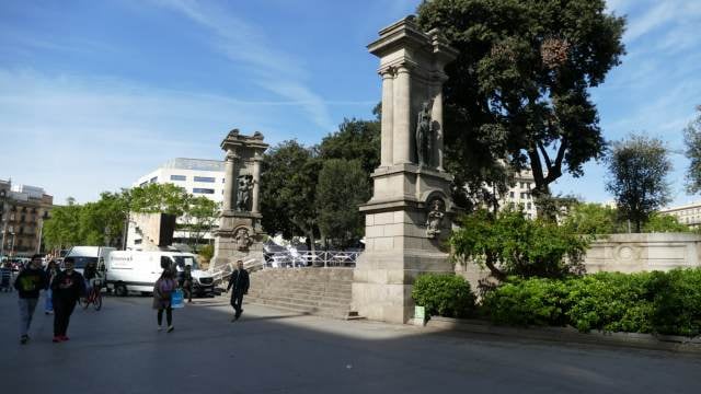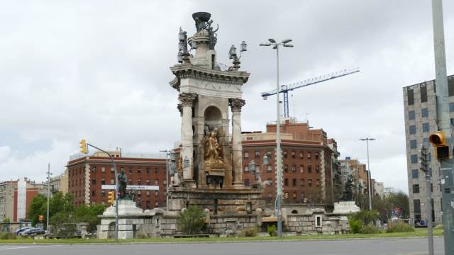 Cette place de Puig i Cadafalch est le point d’union entre la montagne de Montjuïc, le quartier de Sants et le Poble-sec. À l’intersection de quelques-uns des axes les plus importants de Barcelone se trouve la Plaça d’Espanya, porte d’accès vers Montjuïc édifiée pour l’Exposition universelle de 1929 en partie inspirée de la place Saint-Pierre du Vatican. Au centre se trouve une fontaine monumentale de Josep Maria Jujol, élève de Gaudí, baptisée Font dels Tres Mars, symbolisant les trois mers qui entourent la péninsule ibérique.