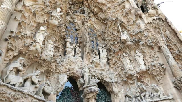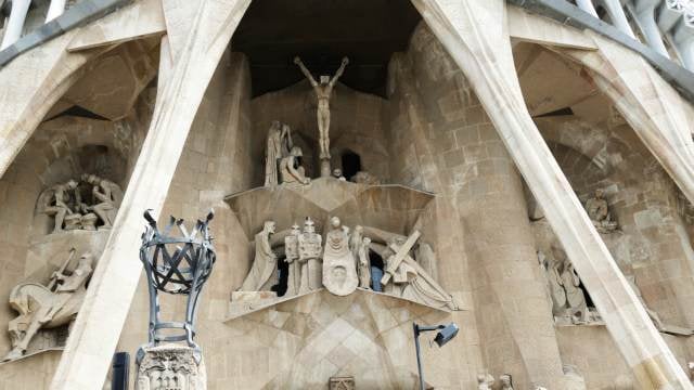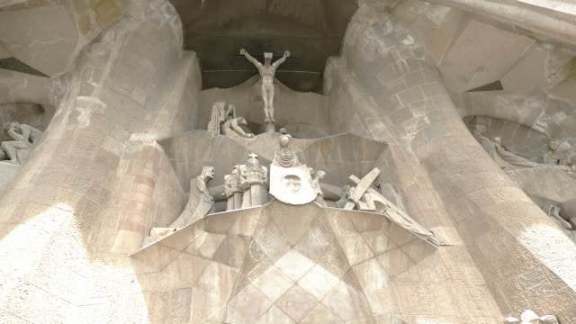 Le symbolisme de ses trois façades principales se distingue particulièrement : la façade de la naissance du Christ, très décorée et pleine de vie, la seule que Gaudí a pu voir achevée ;  la façade de la Passion, de la mort et de la résurrection, plus austère et simplifiée, conçue par le sculpteur Josep Maria Subirachs, entre 1987 et 2009 ;  et la façade de la Glòria, beaucoup plus grande et monumentale que les autres, en cours de construction.