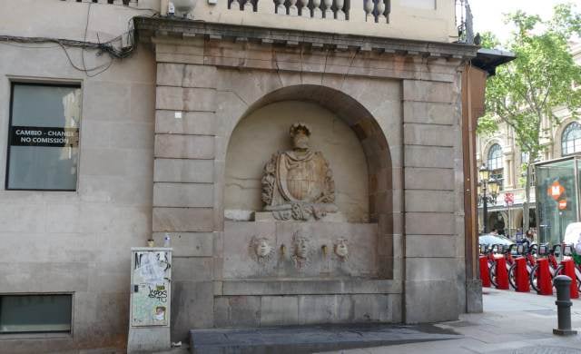 La Rambla de Canaletes, avec la célèbre fontaine de Canaletes, où les supporters du Barça se réunissent pour fêter ses victoires. La tradition dit qu’un visiteur qui boit l’eau de cette fontaine reviendra à Barcelone.