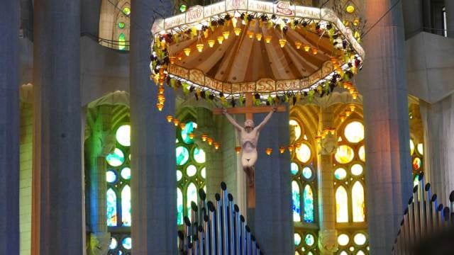 Indiquons tout particulièrement l'autel de la Sagrada Família et l'abside où se trouve l'une des sept cryptes de la basilique. L'intérieur de la crypte est décoré avec des têtes d'anges et une statue de Jésus sur la Croix. Des deux côtés, les escaliers venant d'en haut symbolisent le chemin entre la terre et le ciel.